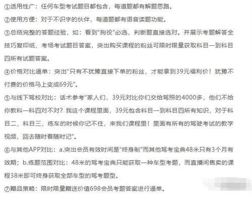 简单说就是:招聘美女老师(一般美就行了),并在某宝批发购买“驾考APP”会员卡密,大概5元一个,但是直播间销售价格在39.9,通过开直播讲解“驾考理论试题”输出有价值的干货内容,吸引目标群体,向该群体销售卡密赚取差价。