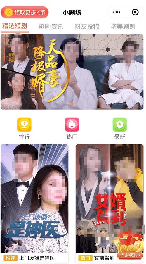 这个玩法类似小说,就是把小说视频化,看这样的短视频确实会上瘾,后面知道这个玩法是短剧后,还知道他们在微信上主要是小程序,我就去搜索短剧,不搜不知道,搜索发现,玩法真牛逼,霸屏操作,一个公司注册几十个账号,操作这个项目。
