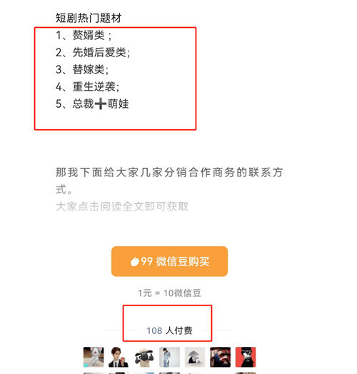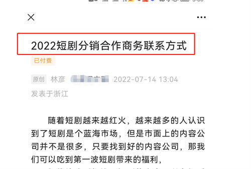 这里可以确定的是,短剧确实可以分销,可以赚钱,不然没有那么多公司疯狂的投钱,这是目前火的一个领域,很多大公司都开始投入这个领域,这样的短剧看起来比小说舒服,标题说的是我被割了,其实我赚了,我知道还可以借助这个玩法赚钱。我花了9.9元,我知道这个可以玩,以后我找到一些需求的时候,我找到答案,我就设置付费阅读,标题就是别人搜索,就是别人想看到的,是不是就可以赚钱呢,比如某某领域的内部资料,是不是可以这样设置操作呢?